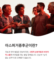 - 아스퍼거증후군은 지능은 정상이지만 사회적 소통과 루틴 집착이 특징입니다.
