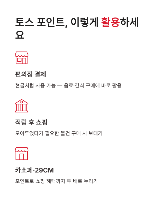또한, 토스 포인트는 현금처럼 사용할 수 있어서 활용도가 정말 높잖아요? 저는 이 포인트로 편의점에서 시원한 음료수를 사 마시기도 하고, 적립금으로 모아두었다가 필요한 물건을 살 때 보태기도 합니다. 여러분도 오늘 제가 정리해 드린 정답들로 월요일의 활기를 포인트로 채워보세요. 29CM의 구황작물 디저트나 카쇼페의 혜택들을 둘러보면서 쇼핑의 재미도 함께 느껴보시는 걸 추천드립니다!